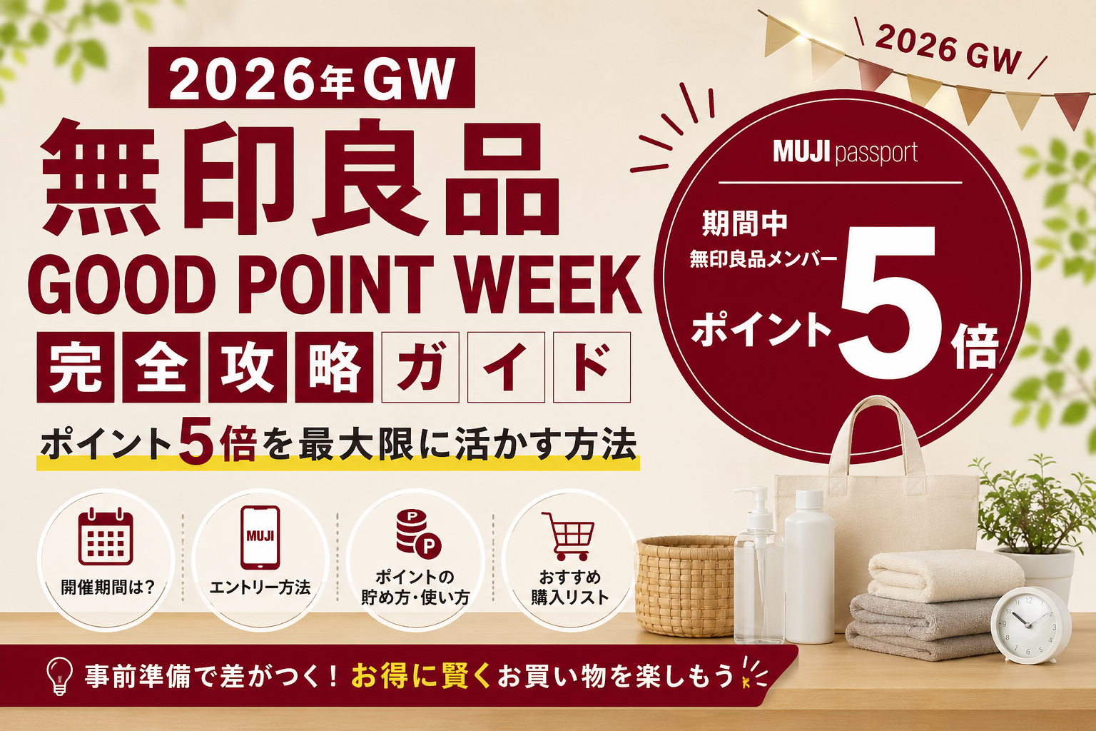 【2026年GW】無印良品「GOOD POINT WEEK」完全攻略ガイド|ポイント5倍を最大限に活かす方法