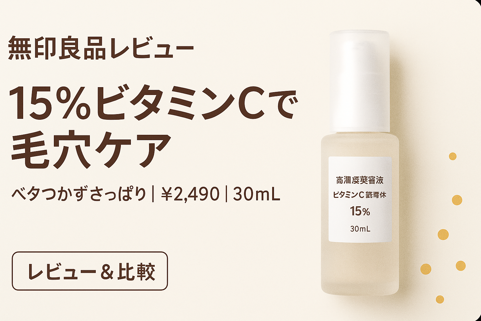 「ベタベタは苦手。でも毎日のスキンケアで毛穴やくすみ感をどうにかしたい」。そんな人に注目されているのが、無印良品の「高濃度美容液 ビタミンC誘導体配合」。天然由来成分100%・無香料/無着色などのやさしめ設計ながら、ビタミンC誘導体を15%配合した攻めの一本です。発売(2024年6月)後に話題化し、2025年7月には2,990円→2,490円へ価格見直し。実際の使用感から口コミ、他社比較、注意点まで、買う/買わないの判断材料をまとめました。