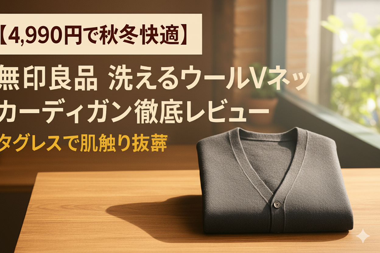 【4,990円で秋冬快適】無印良品 洗えるウールVネックカーディガン徹底レビュー|タグレスで肌触り抜群